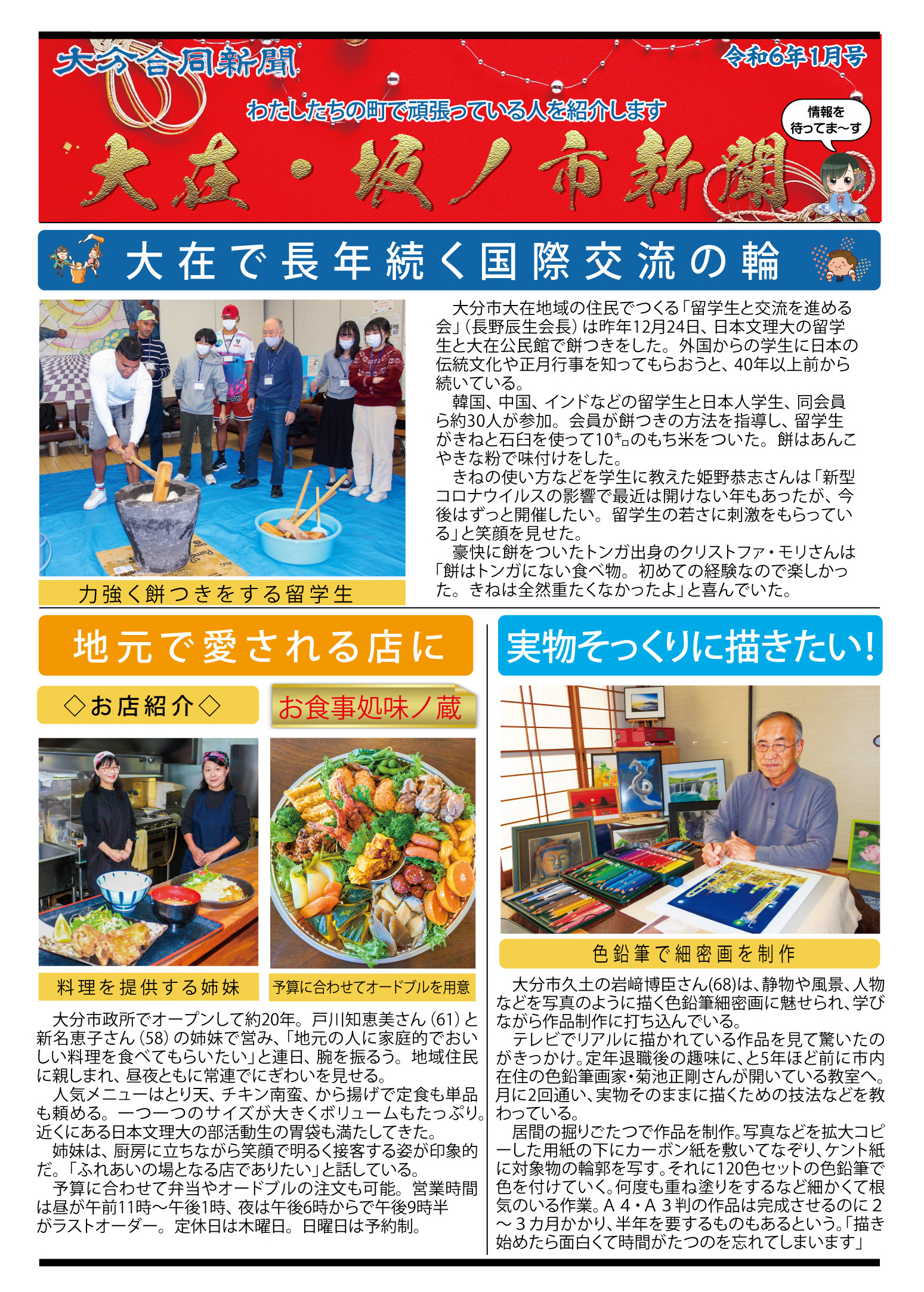 大在・坂ノ市新聞 令和6年1月号を発行しました 2024年1月14日 最終更新日時 : 2025年3月6日 namihei Listen to this article Follow me! Post Views: 9 X
