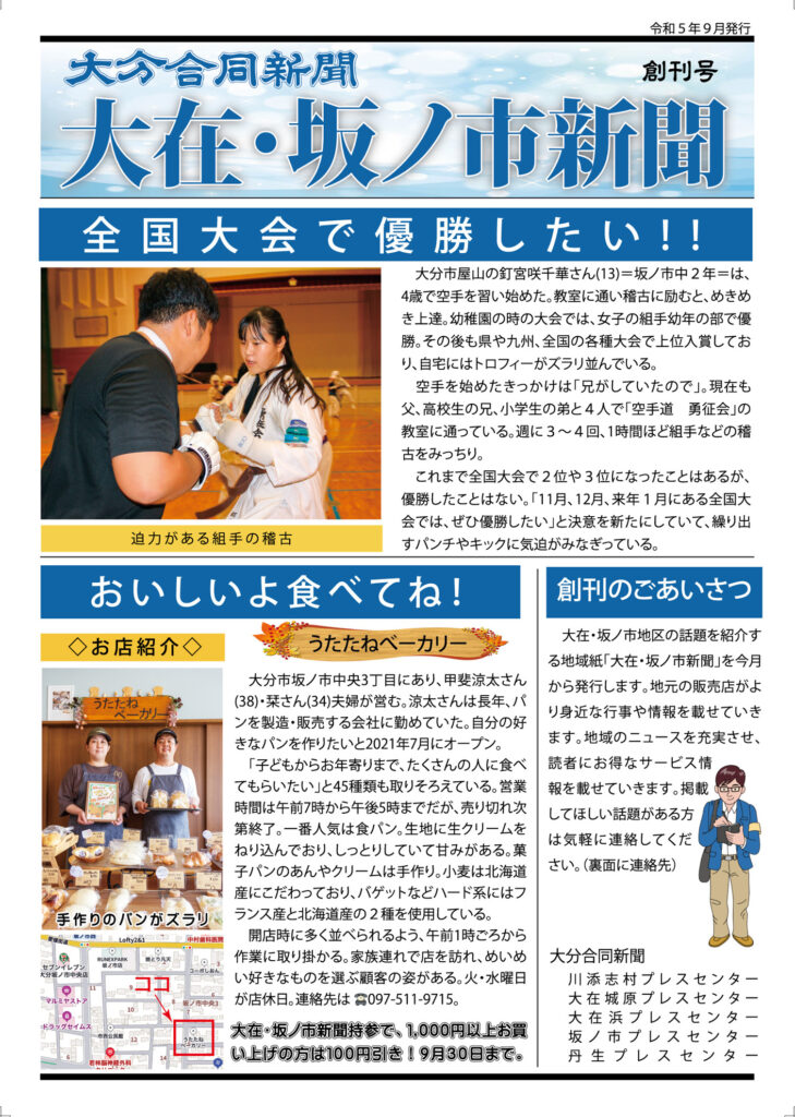 大在・坂ノ市新聞 令和5年創刊号(9月号)を発行しました 2023年9月10日 最終更新日時 : 2025年3月6日 namihei Listen to this article Follow me! Post Views: 16 X